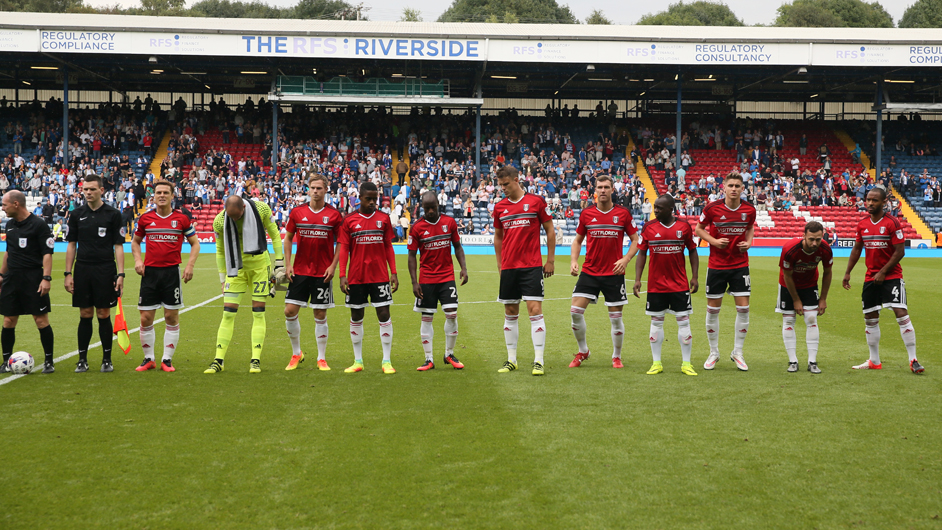Fulham line up before the Sky Bet Championship match between Blackburn Rovers and Fulham played at Ewood Park, Blackburn on 27th August 2016